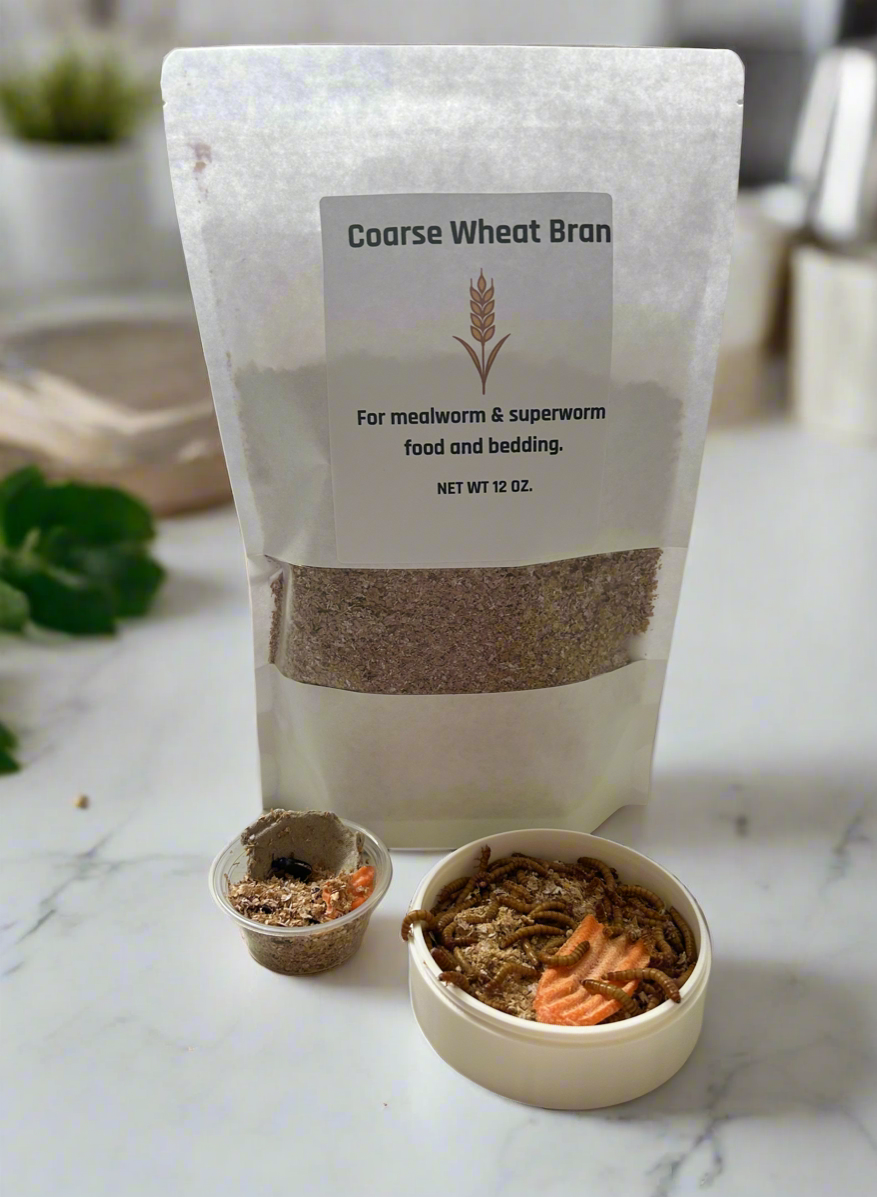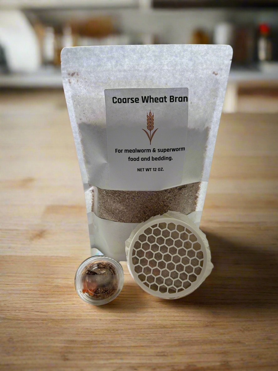 Premium, wheat bran (pre-frozen to ensure no pests). Serves as both food and bedding for your worms. Comes sealed in a protective bag for freshness.